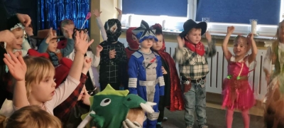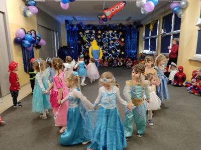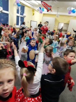 W minionym tygodniu przedszkolaki uczestniczyły we wspólnej zabawie karnawałowej. Dzieci wcieliły się nie tylko w różne postacie bajkowe jak superbohaterzy, królewny, księżniczki, wróżki ale także pojawiły się kotki, liski, policjanci, piraci czy piłkarze. Bal umożliwił dzieciom wspólne spędzenie czasu w radosnej atmosferze. Zabawa przyniosła wiele wrażeń naszym przedszkolakom. Dziękujemy rodzicom za zaangażowanie w przygotowanie strojów.