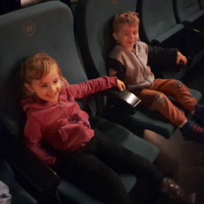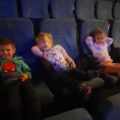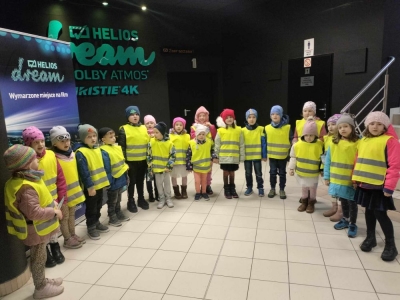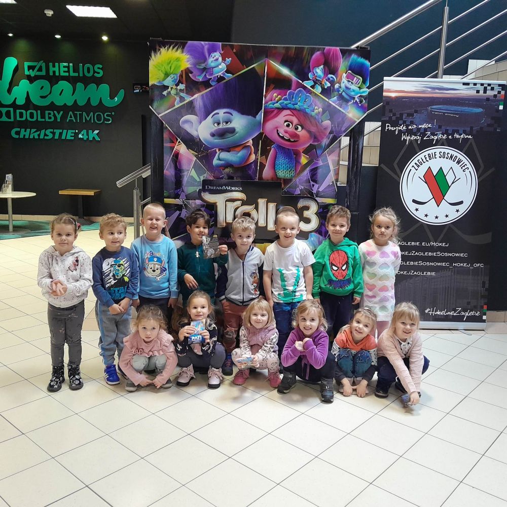 15.11.2023r. Biedronki III i Jeżyki V wybrały się do Kina Helios w Sosnowcu, by wspólnie obejrzeć film animowany „Psi Patrol – Kosmo Psy”. Dzieci skorzystały z rozrywki kulturalnej w iście VIP-owskich warunkach. Cała sala kinowa była przeznaczona do naszej dyspozycji. Kameralne grono i swoboda, dostosowywanie przez pracowników kina natężenia dźwięków audio oraz oświetlenia spowodowały, że dzieci czuły się w pełni bezpiecznie.