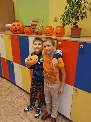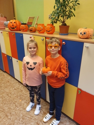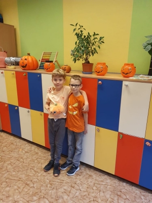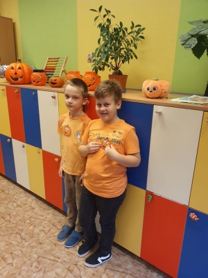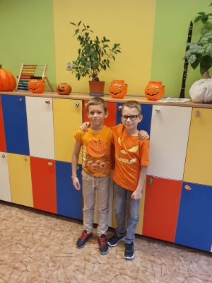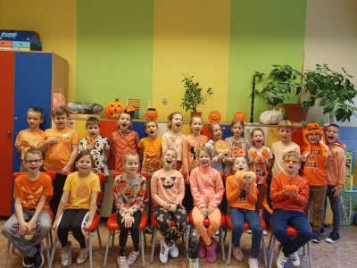 W naszej klasie 2b Dzień Dyni obchodziliśmy 31 października, wtedy to wśród dzieci ubranych na pomarańczowo, można było poczuć się jak na dyniowej grządce. Uczniowie poznali wielką różnorodność dyń i wzbogacili wiedzę na ich temat. Dowiedzieli się, że dynia jest bardzo zdrowym warzywem i że można z niej przygotować wiele dań tj.: pieczywo, zupę, dżem, ciasto, babeczki, przetwory i soki. Dzieci miały również okazję przekonać się jak smakuje zupa dyniowa, którą przygotowały dla nas panie kucharki.