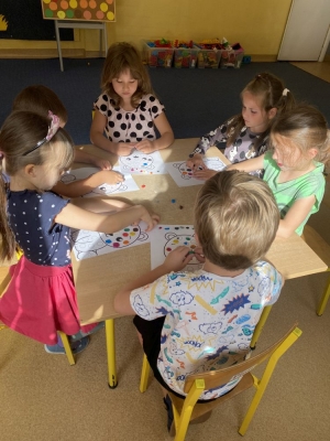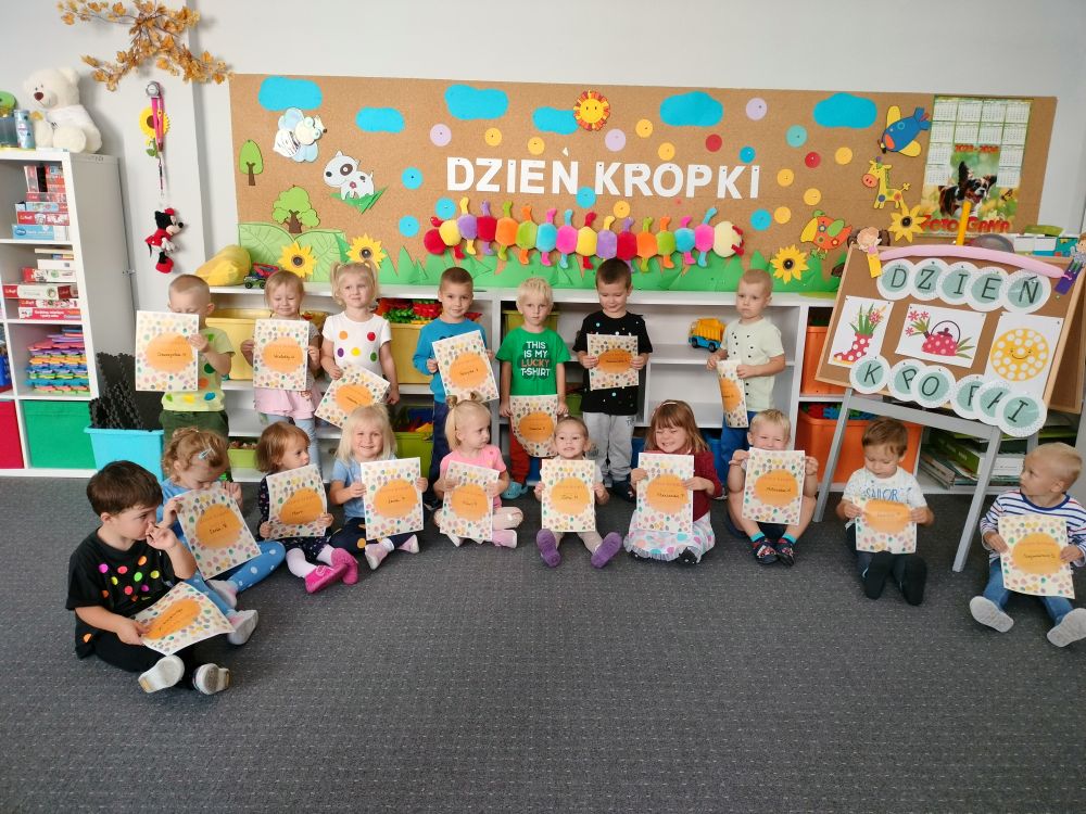 Tego dnia, kropki można było zobaczyć wszędzie – na dzieciach, w sali i na kartkach papieru. Przedszkolaki poznały historię tego święta oglądając krótkometrażowy film na temat książki The Dot, którą napisał Peter Reynolds. Dzieci uczestniczyły m.in. w zabawach plastycznych, ruchowych i matematycznych, a na koniec znalazły się nawet okrągłe smakołyki.