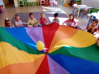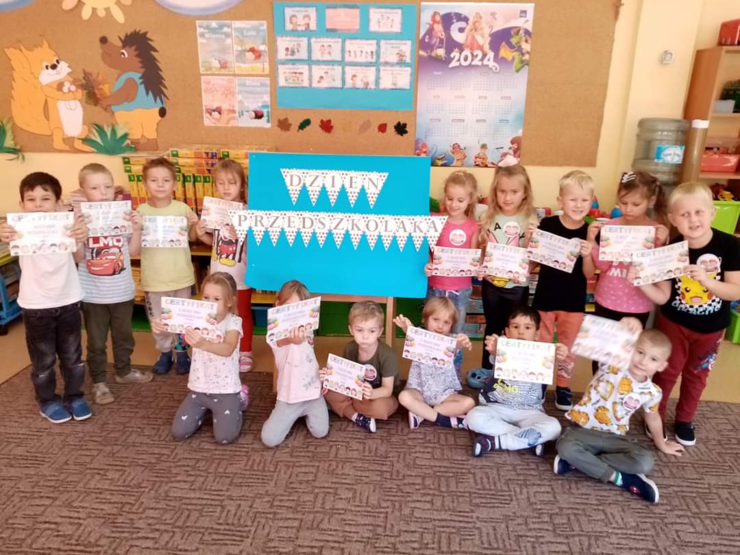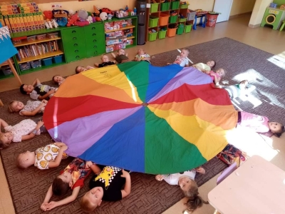 20 września to najważniejsze święto dla naszych „Biedronek” i wszystkich podopiecznych – Dzień Przedszkolaka, w tym dniu hulanki i uśmiechów nie było końca, bawiliśmy się chustą animacyjną ćwicząc swoją zręczność i współpracę z kolegami, dostaliśmy wspaniałe prezenty, a na koniec zasiedliśmy do wspólnego poczęstunku, wraz z kolejnym zjedzonym łakociem wprost proporcjonalnie pojawiał się coraz to większy uśmiech na naszych twarzach, cieszymy się, że jesteśmy PRZEDSZKOLAKAMI.