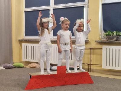 Dzieci popisały się również swoimi umiejętnościami aktorskimi przedstawiając krótka bajkę „Po co kotu buty?”