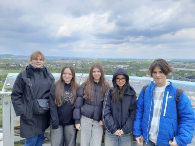 Dnia 19.04 grupa ósmoklasistów wybrała się na zajęcia Edukacji Regionalnej na Wydział Nauk Przyrodniczych w Sosnowcu. Z dachu słynnej Żylety podziwiali panoramę Sosnowca i okolic, identyfikowali elementy krajobrazu, porównywali elementy współczesne i historyczne z wykorzystaniem tablic Stacji Czytania Krajobrazu. Następnie zapoznawali się ze zmianami klimatu, samodzielnie tworzyli diagramy pokazujące zmienność klimatu w ostatnich dziesięcioleciach. Podczas zajęć komputerowych poszerzyli swoją wiedzę i umiejętności z programu Surfer i Exell. Do szkoły wracali pieszo, szlakiem obiektów z czasów getta znajdującego się na Środuli.