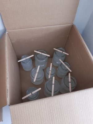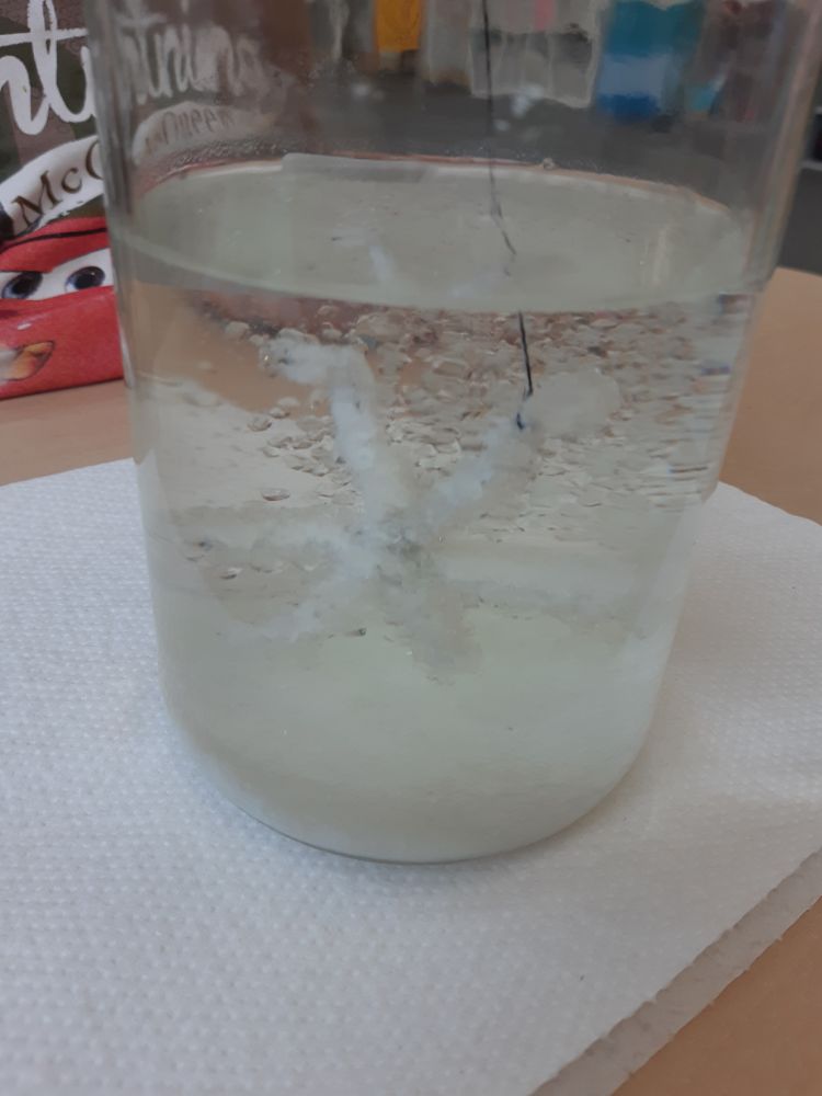 Gotowe słoiki ze śnieżynkami odłożyliśmy w ciemne, bezpieczne miejsce i obserwowaliśmy proces krystalizacji. Śnieżynki zostały wyjęte po dwóch dniach , efekt był zaskakujący, reakcje dzieci wspaniałe.