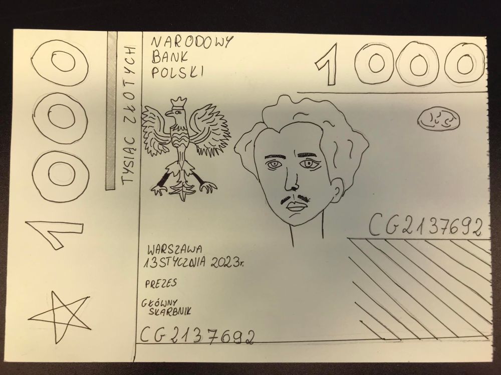 - Projekt powinien zawierać opracowanie awersu i rewersu banknotu o nominale 1000 zł.