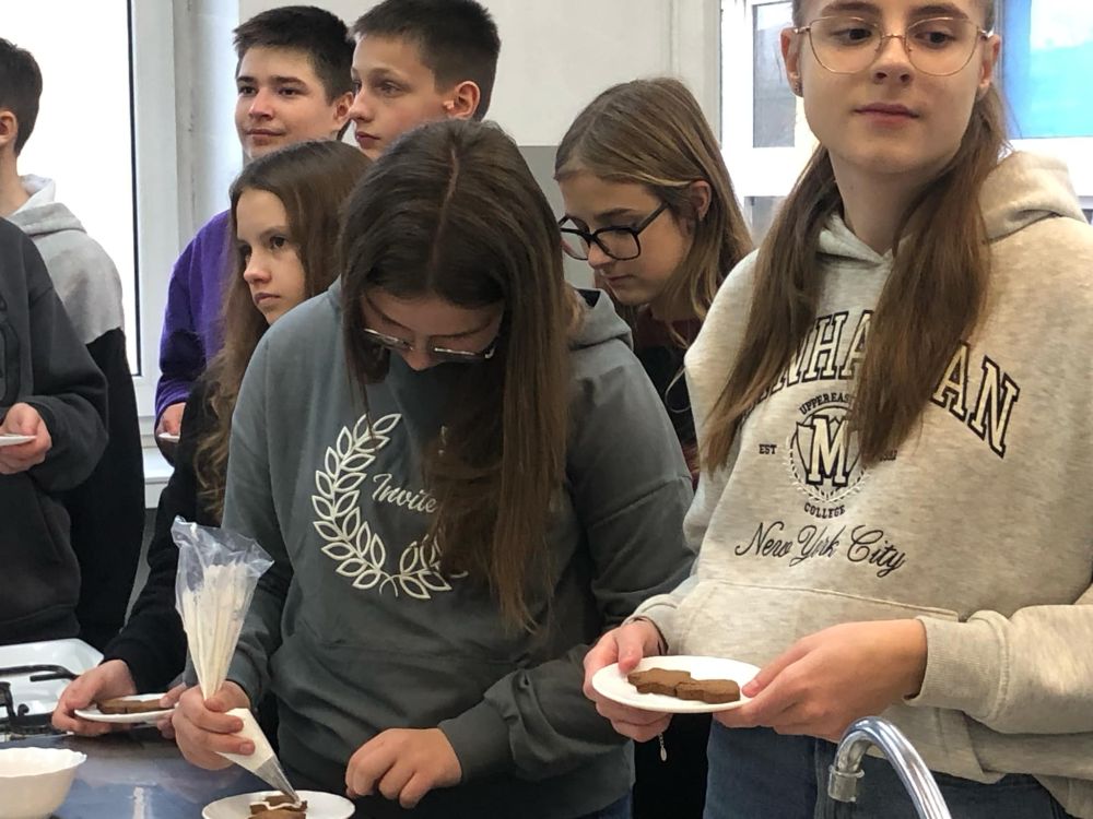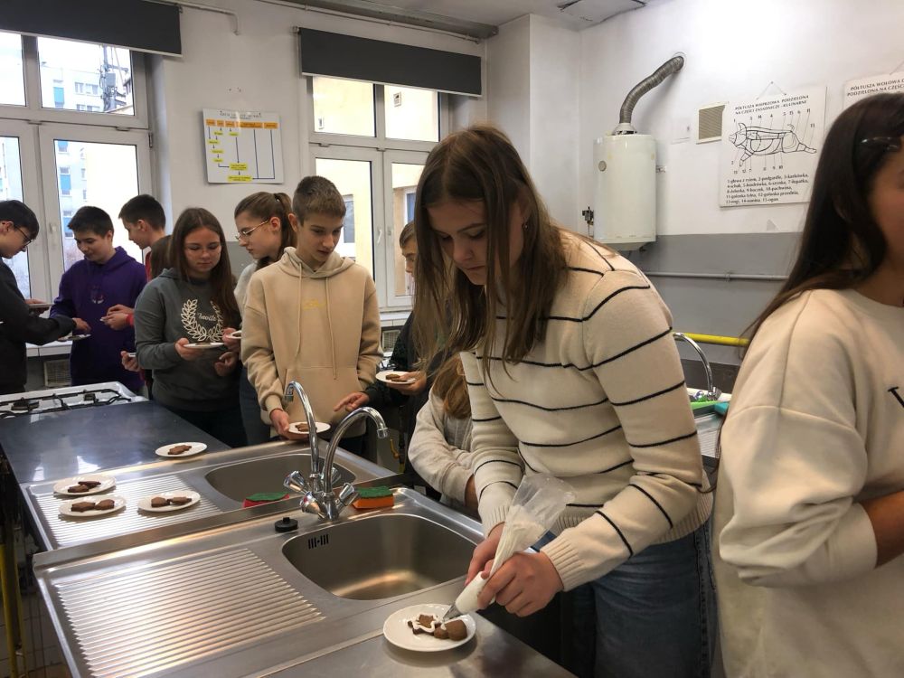W dniu 4 grudnia uczniowie klasy 7c uczestniczyli w wydarzeniu „ Mikołajki w CKZiU „w Technikum nr 3 w Sosnowcu gdzie zapoznali się z ofertą edukacyjną gastronomika. Dzień ten upłynął w bardzo miłej i świątecznej atmosferze, uczniowie samodzielnie dekorowali upieczone pierniki 🙂