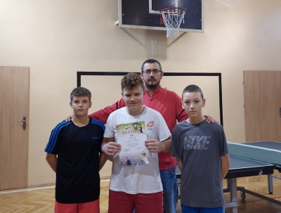 Mistrzostwa Sosnowca w tenisie stołowym chłopców przez Piotrek · 20 października 2021 · odsłon: 81 Drużyna Chłopców z Armaty zajęła II miejscem w Sosnowcu w tenisie stołowym Igrzysk Dzieci rozegranym w Szkoła Podstawowa nr 13 w Sosnowcu Skład drużyny : 1. Bartosz Klasiński 2. Oliwier Sych 3. Mateusz Nowakowski Poprzedni Następny Zamknij Pełny Opiekun Grzegorz Mentel Gratulujemy Udostępnij na Facebook Messenger