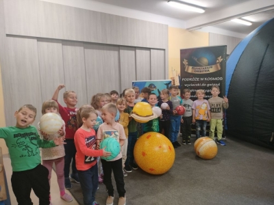Kosmiczną przygodę prowadząca rozpoczęła bawiąc się z dziećmi Piłkami-PLANETAMI, co pozwoliło dzieciom zapoznać się z nią, nabrać pewności i dać się porwać w kosmiczną podróż.