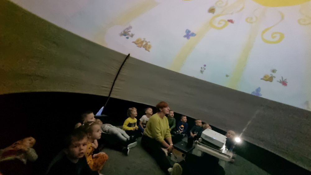 Przenośne planetarium pozwoliło na emisję filmów o różnorodnej tematyce. Nasi podopieczni mogli przenieść się w świat ekologicznego życia krecika.