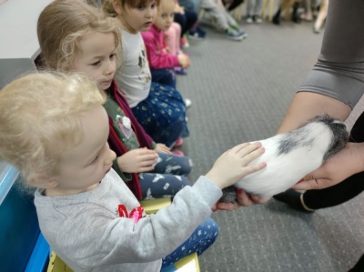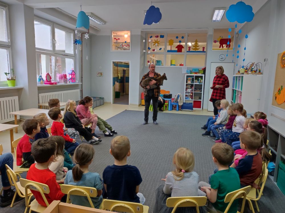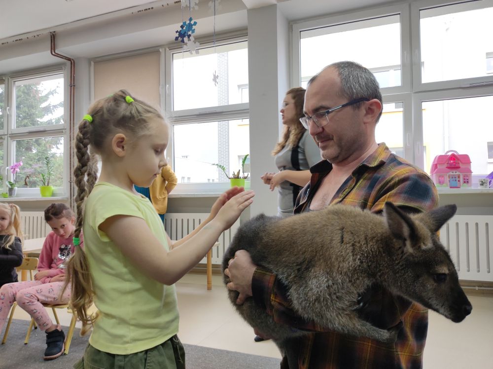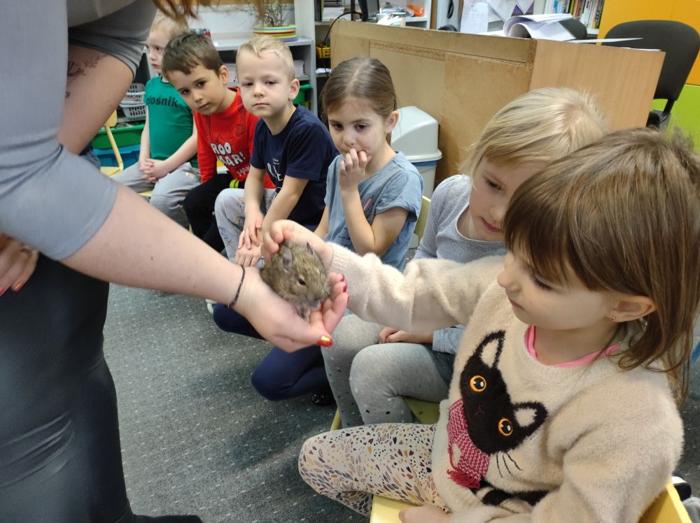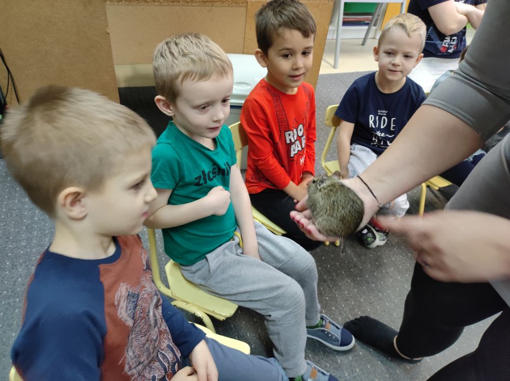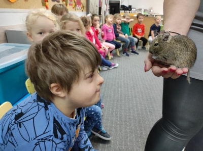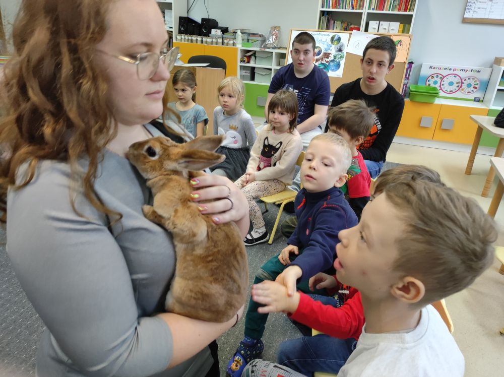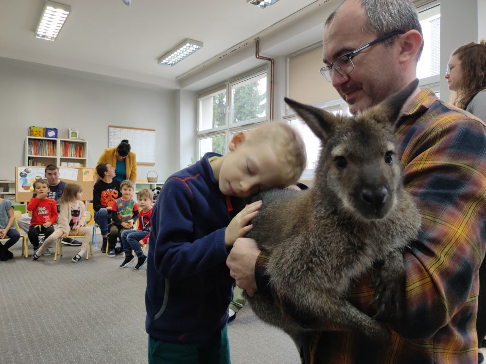 W listopadzie w Przedszkolu Miejskim nr 51 miało miejsce niezwykłe wydarzenie. Wraz z uczniami Zespołu Szkół Specjalnych w ramach realizacji projektów SCWEW „Change Makers”, „Akademia Rozwoju i Kreatywnosci” i „Szkoła bohaterów” mieliśmy okazję poznać niezwykle miłych gości różnej wielkości. Były to ssaki: jeż pigmejski, kawia domowa, królik miniaturka oraz kangur Walabia Bennetta. Dzieciaki dowiedziały się gdzie w naturalnym środowisku występują te zwierzęta, jakie mają zwyczaje, co jedzą oraz jak o nie dbać, gdy są naszymi domowymi pupilami. Poza dużą dawką wiedzy jaką zdobyli nasi podopieczni, mnóstwem ciekawostek, najfajniejsze było to, że zwierzęta można było dotknąć, pogłaskać i przytulić. Mamy nadzieję na kolejne spotkanie ze zwierzakami. Ciekawe czego dowiemy się następnym razem…