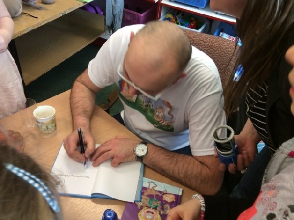 W miłej, przyjaznej atmosferze uczniowie wysłuchali kilku przygód kota Cukierka opowiadanych przez autora oraz wysłuchali fragmentów opowiadań czytanych z książki pt. „Jak się masz cukierku”. Później zadawali pytania, Spotkanie zostało zakończone zakupem książki z dedykacją.