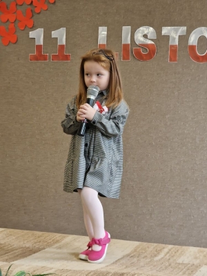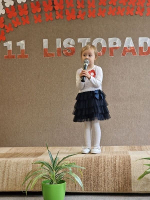 Przedstawiciele poszczególnych grup na przygotowanej scenie zaprezentowali wiersze i piosenki o tematyce patriotycznej.