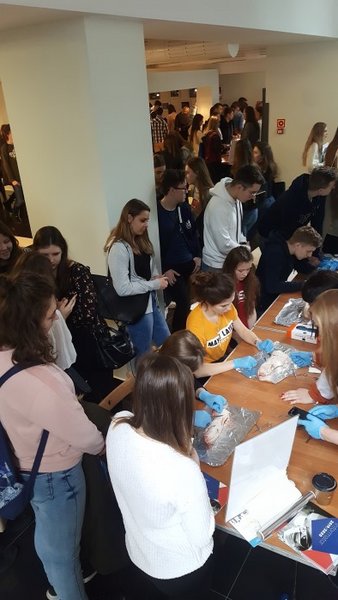 Młodzież miała okazję spotkać przedstawicieli różnych kierunków studiów, wysłuchać ciekawych wykładów, a także uczestniczyć w warsztatach szycia chirurgicznego, pielęgniarstwa, medycyny sądowej, psychologicznych, chemicznych, ustalania czasu zgonu, sekcji zwłok…ratownictwa medycznego, kosmetologii…