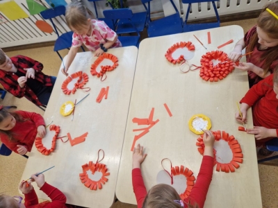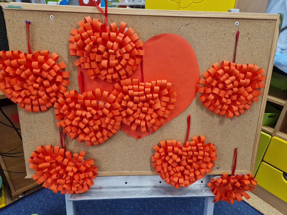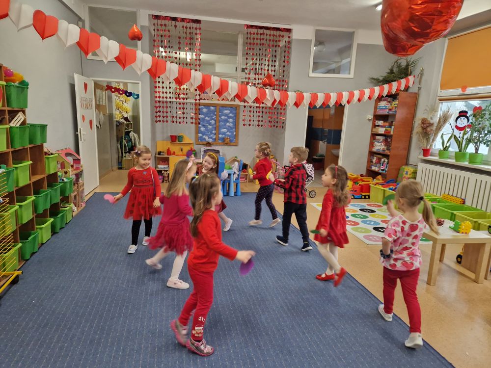 Dzieci wzięły udział w quizach i zabawach taneczno- ruchowych. Każde dziecko wykonało także serce 3D.