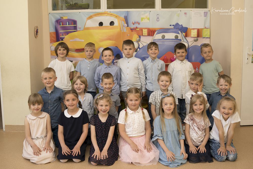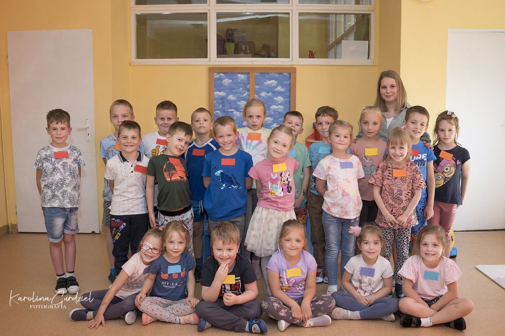 Na koniec pani fotograf zrobiła wszystkim dzieciom wspólną fotografię. Okazało się, że pozowanie do zdjęcia nie jest łatwe- trzeba przez chwilę stać nieruchomo. Dzieci zrozumiały ile trzeba poświecić pracy aby wykonać dobre zdjęcia.