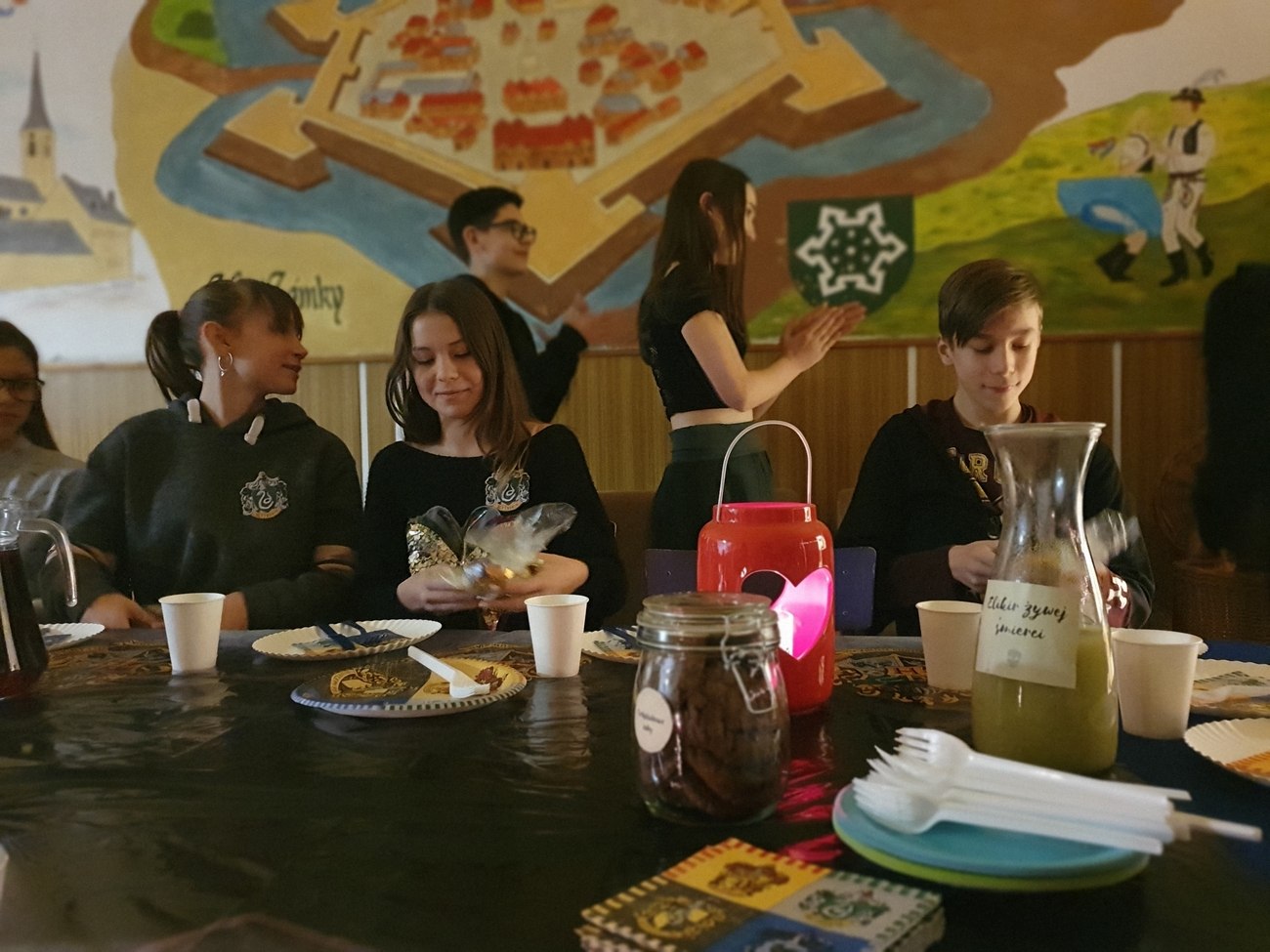 Młodzi adepci magii mieli okazję zobaczyć „alchemiczne” eksperymenty. Ponadto zostali pasowani na uczniów w Szkole Magii i Czarodziejstwa w Hogwarcie oraz rozwiązywali wiele zawiłych szarad w pokojach zagadek. Finałem zabawy była wspólna uczta oraz uroczyste wręczenie dyplomów ukończenia szkoły. Wielkie słowa uznania dla pani Magdaleny Żak i jej grona magicznych profesorów. Udostępnij na