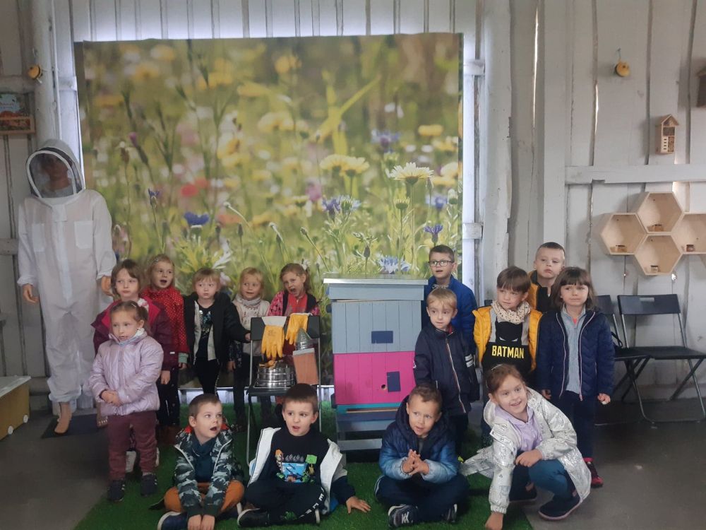 Dnia 5 października, w ramach realizacji projektu „Akademia Kreatywności i Rozwoju”, grupa Kotki i Żabki uczestniczyły w wycieczce do Przybynowa, odwiedzając Agrogospodarstwo „Pod Skałką”. Dzieci uczestniczyły w warsztatach pt. „Jak pszczoły uratowały planetę Ziemię?”, na których poznały budowę ula, rozróżniały pszczołę od osy, a także dowiedziały się m.in. kiedy pojawiły się pierwsze pszczoły, czy wszystkie pszczoły robią mód, jak wygląda życie pszczoły od narodzin, jakie są sekrety pracy pszczelarza, jak można pomagać pszczołom oraz jak zrobić samodzielnie ul, wykorzystując plastikową butelkę i papierowe słomki. Warsztaty były prowadzone w ciekawej dla dzieci formie, w której mogły aktywnie uczestniczyć. Po warsztatach dzieci otrzymały słodki poczęstunek w postaci waty cukrowej, a następnie zwiedziły zwierzyniec oraz Skansen Wsi Jurajskiej.
