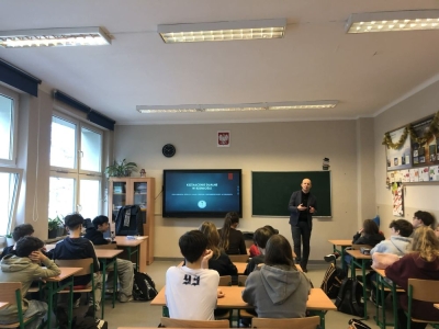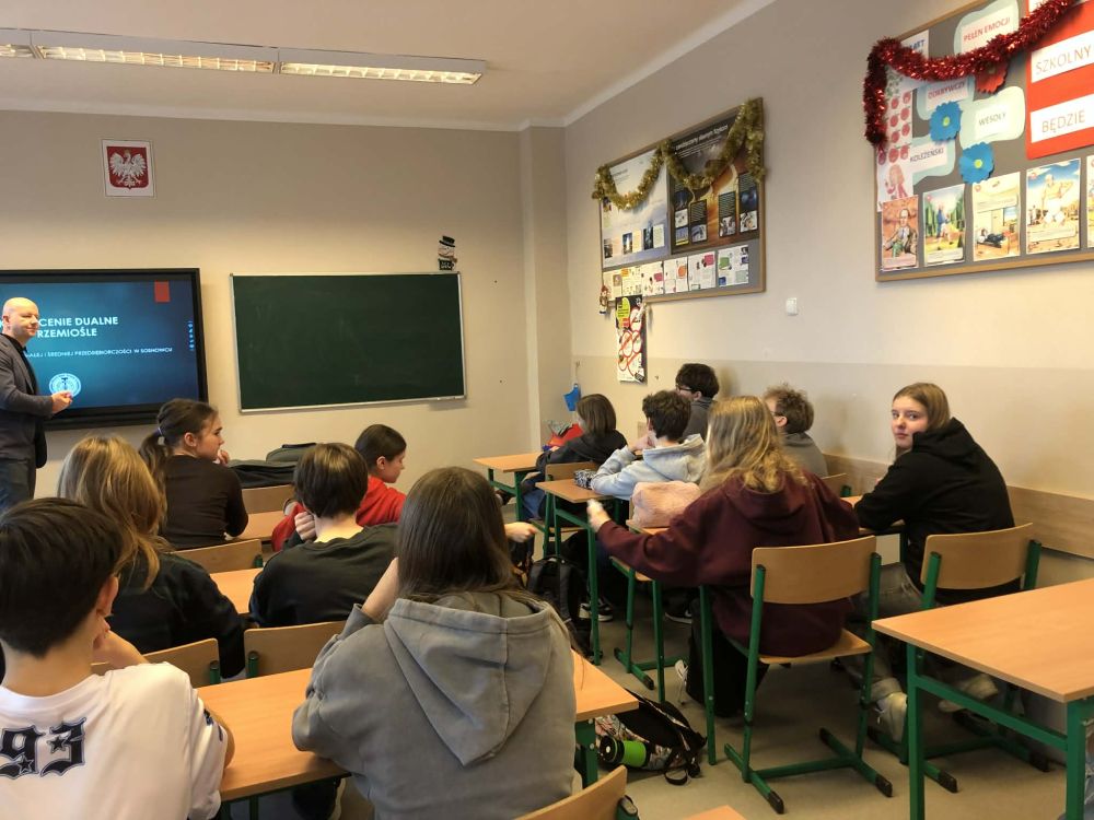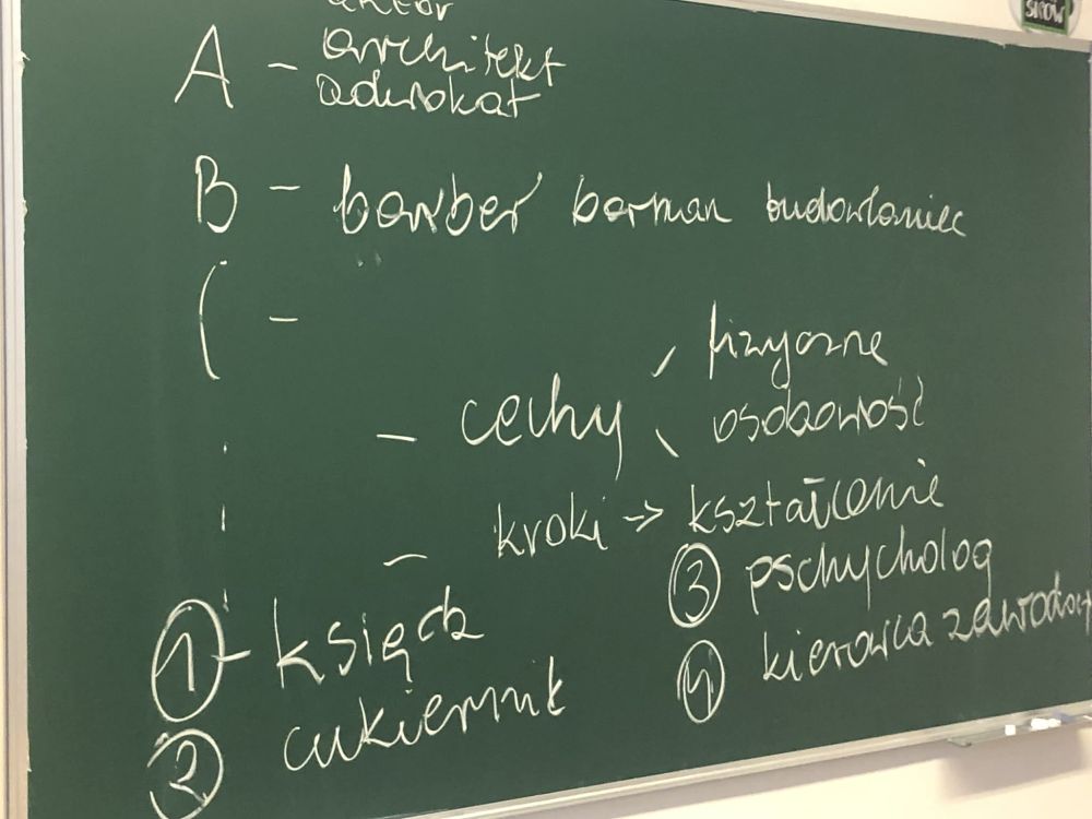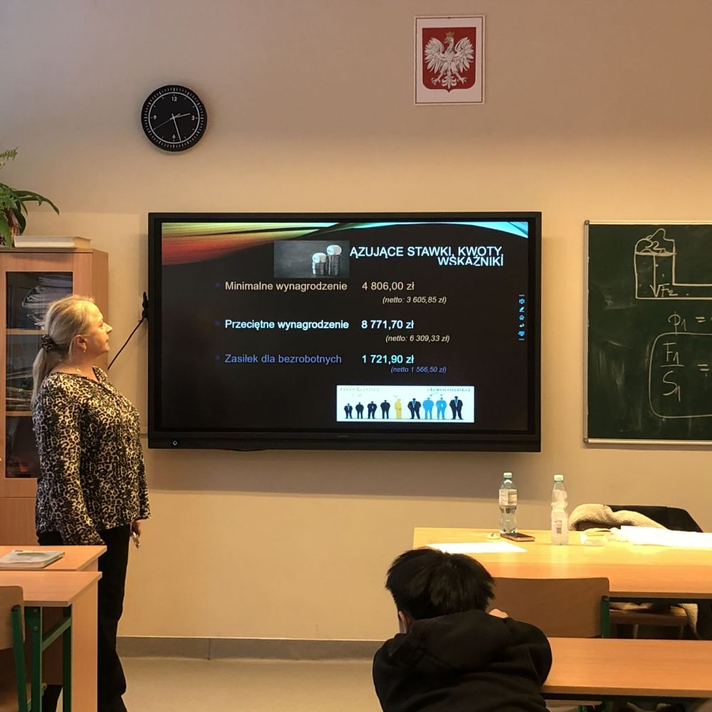 Zajęcia z ekspertami to wspieranie edukacji zawodoznawczej, zawodu, rynku pracy i planowania kariery. Jest to inicjatywa sprzyjająca podejmowaniu przez młodzież trafnych decyzji edukacyjno-zawodowych. Młodzież dowiedziała się czym jest klasyfikacja zawodów i specjalności, omówione zostały podstawowe gałęzie gospodarki, procesy kształtujące rynek pracy. Uczniowie zostali zapoznani z prognozami popytu na pracę: lekarze, pielęgniarki, fizjoterapeuci, masażyści i inne osoby pracujące w zawodach świadczących usługi medyczne/opiekuńcze nie będą narzekali na brak pracy. Z kolei fakt bogacenia się społeczeństwa powoduje, iż więcej wydajemy na nowe rodzaje usług. Przez ostatnie kilka lat stale wzrasta zapotrzebowanie na dietetyków, technologów żywności, agentów ubezpieczeniowych, doradców inwestycyjnych, maklerów czy trenerów fitness. Doradca zawodowy zwrócił szczególną uwagę na fakt, że dobrze wybrany zawód daje wiele satysfakcji i pozwala na zaspokojenie potrzeb człowieka. Podjęta niewłaściwie lub zbyt pochopnie decyzja, może zaważyć na dalszym życiu. Omówiono kryteria ważne podczas wyboru zawodu tj. zainteresowania, predyspozycje, preferencje zawodowe. Przedstawiono zawody deficytowe i nadwyżkowe w Sosnowcu 2026 – BAROMETR ZAWODÓW.Młodzież dowiedziała się również gdzie poszukujący pracy muszą liczyć się z największą konkurencją. Na zakończenie spotkań Pani L. Huppert przeniosła nas w przyszłość…poznaliśmy zawody przyszłości, branże przyszłości: IT,  medyczna, ochrona środowiska, chemiczna, biotechnologiczna, automatyka i robotyka, budowlana, usługi osobiste, zawody rzemieślnicze.